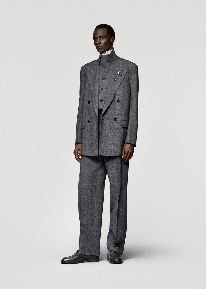 This product should be handled with care. We suggest never wearing the product two days in a row, so that the fibres regain their natural structure and texture. Check the label for washing and ironing instructions. Use a professional cleaning service, particularly if your product includes delicate details. Fold carefully and store with Loro Piana cedar balls/moth repellent in a dry place away from heat and light sources.
