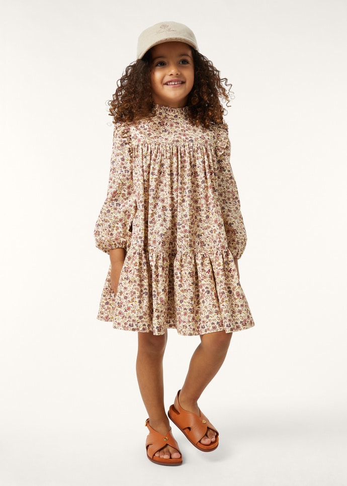 Confectionnée dans un mélange raffiné de coton et de soie, la robe Larisa est un ajout élégant et ludique à la garde-robe de votre enfant. Elle est rehaussée d’un imprimé floral intégral, qui apporte une note ludique et accrocheuse à cette silhouette évasée. Pour une touche de charme supplémentaire, l’encolure, les manches et la patte de boutonnage du col sont ornées de délicats volants.